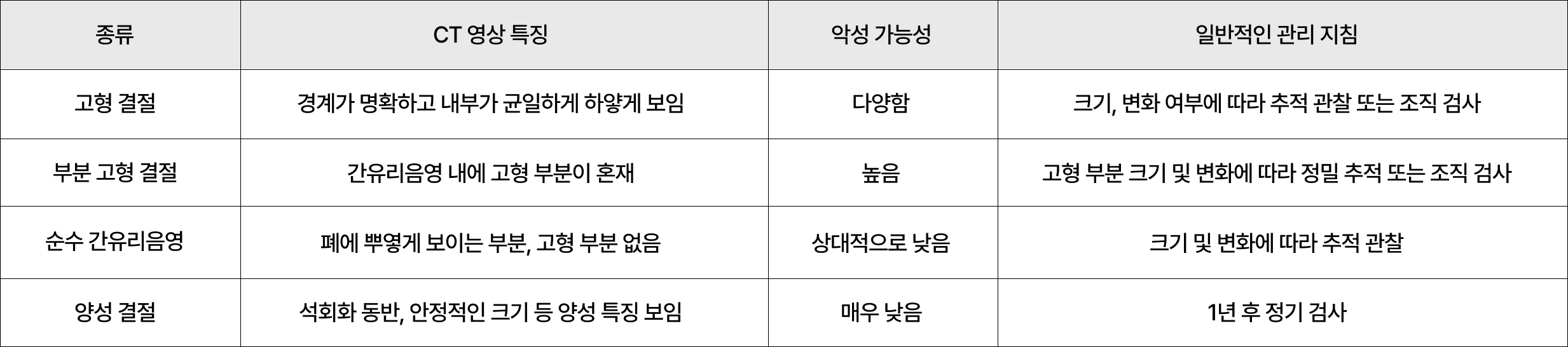 정확한 영상 판독과 함께, 변화 양상에 따라 맞춤형으로 대응하는 것이 핵심입니다. 또한, 의미 있는 이상 소견이 발견되었을 경우에는 정확한 진단을 위해 반드시 의료진과의 상담을 통해 다음 단계를 논의해야 합니다. 이는 단순한 CT 판독을 넘어, 환자 중심의 정밀하고 체계적인 폐 질환 관리의 출발점입니다.